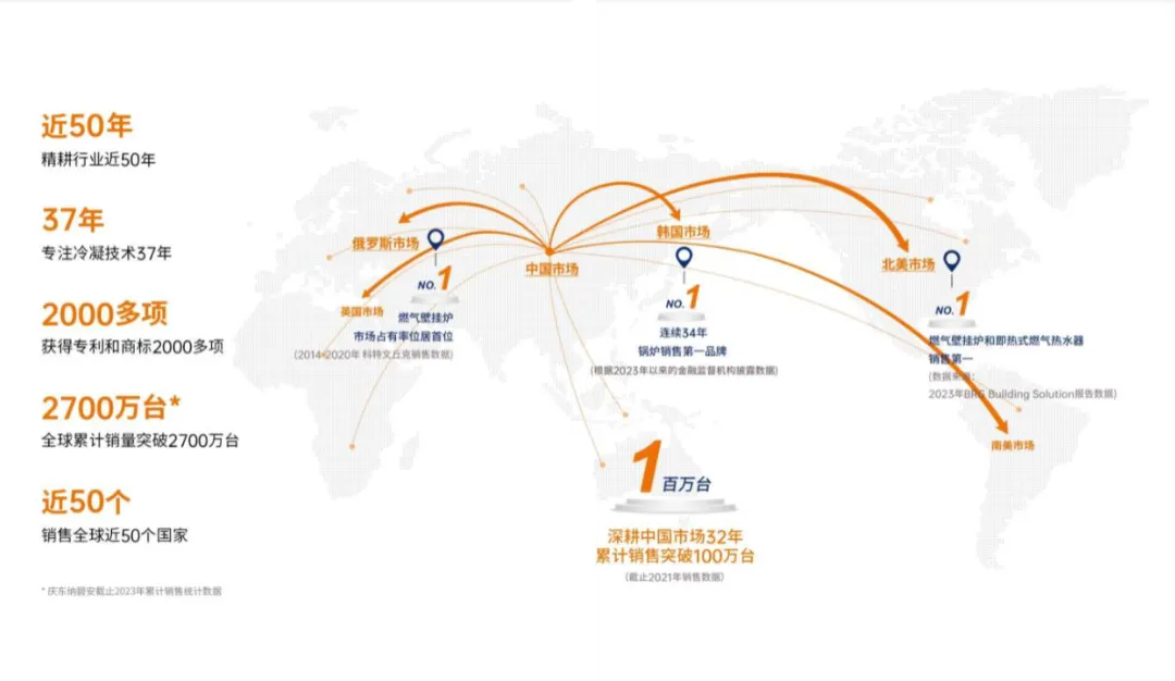 Çì¶«Äɱ̰²Á¬Ðø¶àÄêÎȾӺ«¹ú±Ú¹Ò¯Êг¡ÏúÁ¿µÚÒ»£¬²¢»ý¼«Íƶ¯º«¹úÀäÄý¼¼ÊõÆÕ¼°Õþ²ß¡£Ä¿Ç°£¬²úÆ·Òѳö¿Ú½ü50¸ö¹ú¼ÒºÍµØÇø¡£2023Ä꣬ÔÚ±±ÃÀÊг¡£¬Çì¶«Äɱ̰²µÄÈ¼Æø±Ú¹Ò¯ºÍ¼´ÈÈÊ½È¼ÆøÈÈË®Æ÷Êг¡Õ¼ÓÐÂʵÚÒ»¡£ÆäÖУ¬ÀäÄý¼´ÈÈÊ½È¼ÆøÈÈË®Æ÷Êг¡·Ý¶î¸ß´ï50%£¬²ÉůÈÈË®Á½ÓÃÈ¼Æø±Ú¹Ò¯µÄÊг¡·Ý¶îÒ²´ïµ½ÁË45%¡£ ´Ó1951ÄêµÄïɽú̿£¬µ½½ñÌìµÄÈ«ÇòÂÌÉ«ÄÜÔ´Áì¾üÕߣ¬Çì¶«Äɱ̰²Ê¼ÖÕÒÔ¡°¼¼Êõ±ä¸ïÂú×ãÉú»îÐèÇó¡±ÎªÐÅÄ´ÓÌæ´úľ²ñµÄȼú¯£¬µ½È«ÇòÁìÏȵÄÀäÄý¼¼Êõ£¬ÔÙµ½¸²¸Ç¼ÒÍ¥Óë³ÇÊеÄÈ«³¡¾°ÄÜÔ´·½°¸£¬Çì¶«Äɱ̰²Ê¼ÖÕÒÔ½ÚÄÜ»·±£¼¼Êõ£¬Íƶ¯ÊæÊÊÉú»îÓë¿É³ÖÐø·¢Õ¹²¢ÐС£